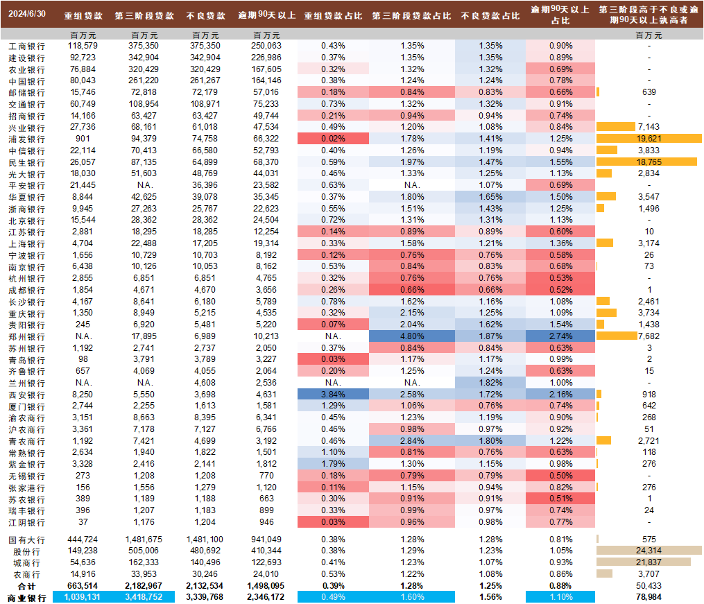 注:我们假设上市银行第三阶段/不良贷款、重组贷款/不良贷款、逾期90天以上贷款/不良贷款指标与上市银行一致。