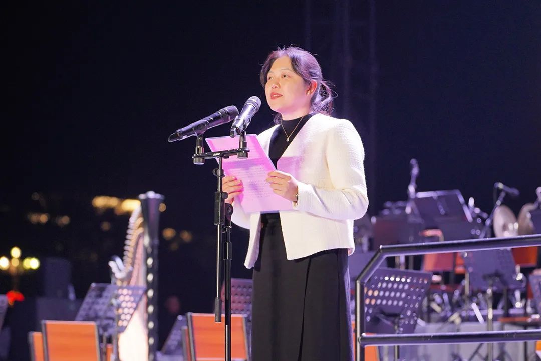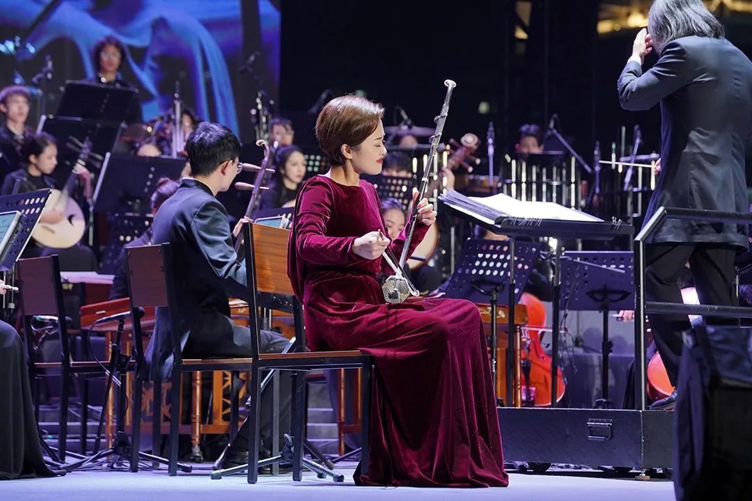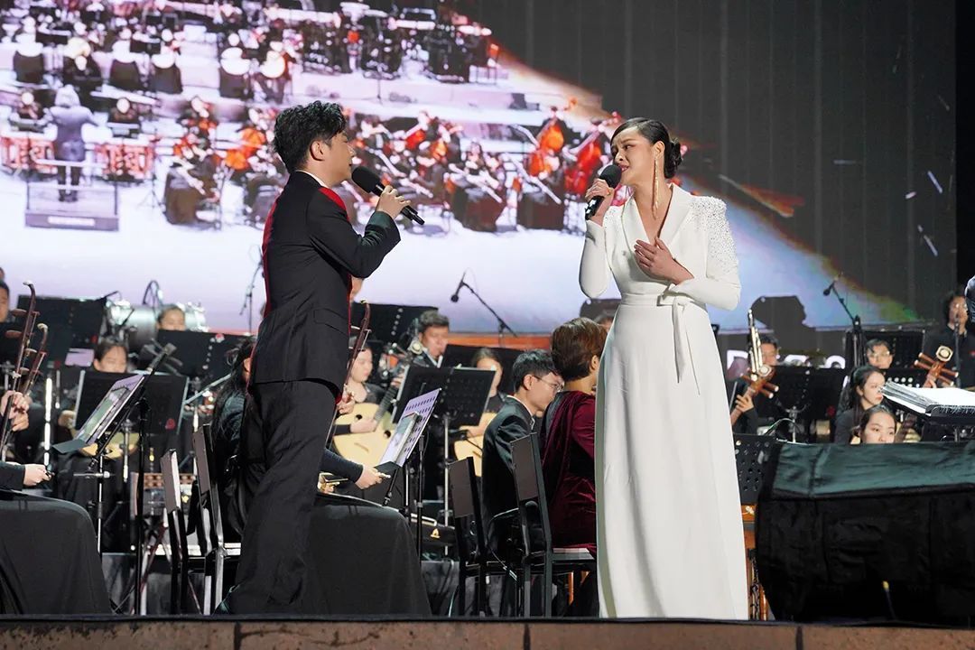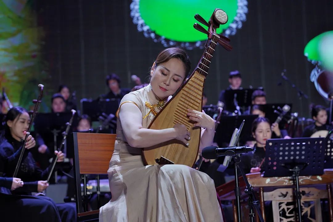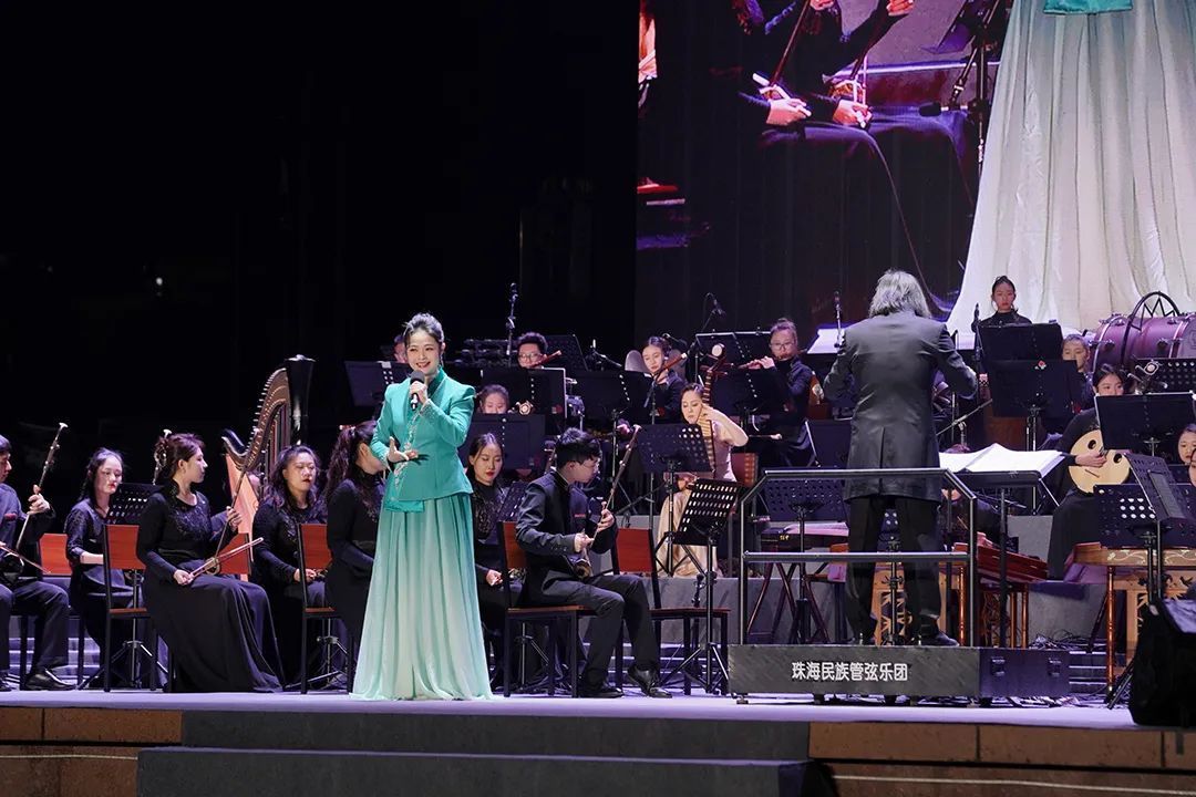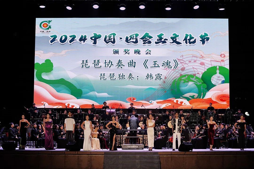 颁奖晚会结束后,2024中国·四会玉文化节音乐会在中国管弦乐《国风》中正式拉开帷幕,中国管弦乐《红楼梦·序曲》、男声独唱《母亲》、合唱《绽放》、粤语小调《荔枝颂》等歌曲逐步将现场气氛推向了高潮。伴着琵琶协奏曲《玉魂》的美妙旋律,身穿中国传统服饰的时装模特手持或佩戴珠宝玉器登上T台,让观众们亲眼领略四会珠宝玉器在创新设计和时尚潮流方面的独特魅力。最后,由香港歌手吴国敬、彭家丽,青年歌手张桢子、信肖乐等歌手的精彩演唱,为整场晚会画上完美的句号。