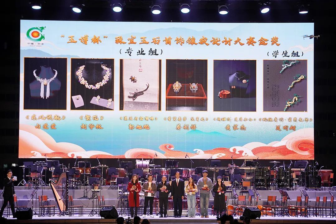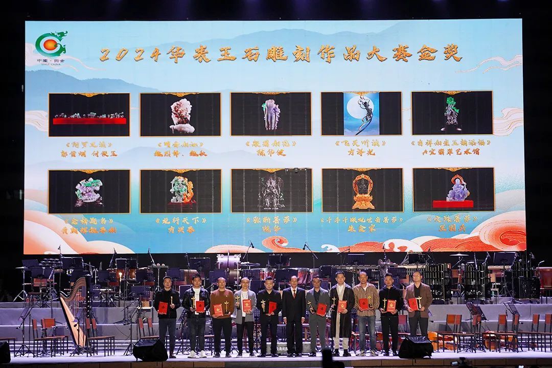 在颁奖晚会上,组委会隆重颁发了2024中国·四会“玉博杯”珠宝玉石首饰镶嵌设计大赛专业组金奖、学生组金奖,2024华表玉石雕刻作品大赛金奖,以及优秀活动组织奖。