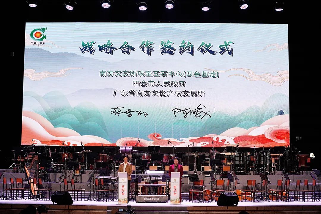 活动中,四会市人民政府与南方文化产权交易所签订《战略合作框架协议》。据了解,南方文化产权交易所是经广东省人民政府批准设立的唯一的省级综合性文化产权交易服务机构,致力于做行业标准建设的引领者、社会责任的担当者和文化产业的推动者,充分运用科技和金融服务等手段,引领各领域文化产业健康持续发展。为筹建南方文交所珠宝玉石中心(四会基地),南方文化产权交易所先后多次来到四会考察玉器市场。《战略合作框架协议》的签订将为推动四会玉文化产业高质量发展掀开新的篇章。
