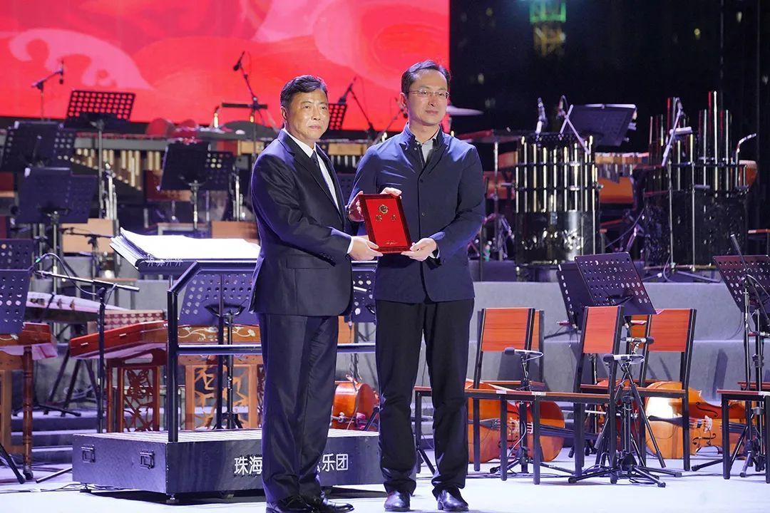 ▲四会市人大常委会主任梁祥达为2024华表玉石雕刻作品大赛金奖获奖者颁奖